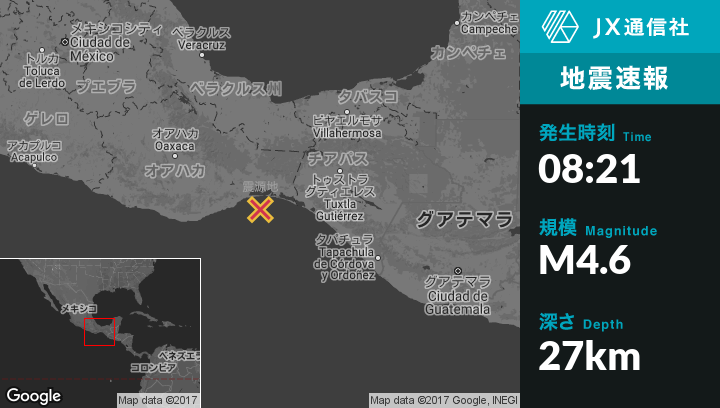 | 震源地 | メキシコのSan Mateo del Marから南東22kmの地点 |