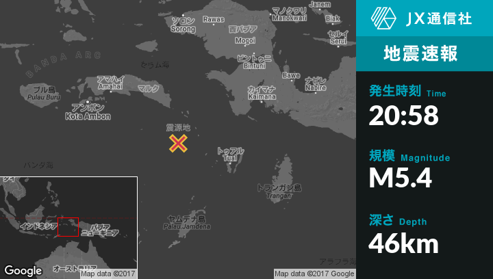 | 震源地 | インドネシアのTualから西北西204kmの地点 |