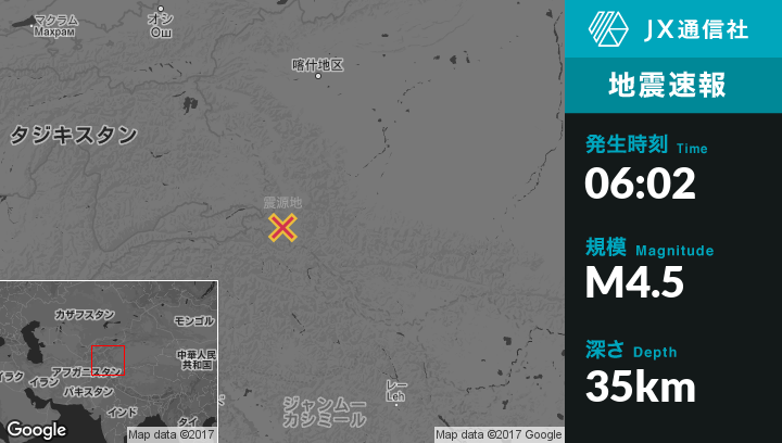 10月26日 06:02頃、パキスタンのBarishalから北北東108kmの地点でM4.5の地震がありました。