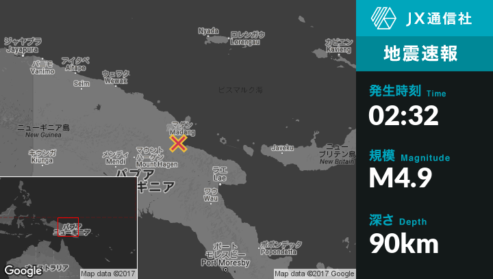 | 震源地 | パプアニューギニアのMadangから西南西17kmの地点 |