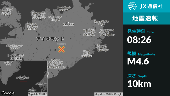 | 震源地 | アイスランドのAkureyriから南南東118kmの地点 |