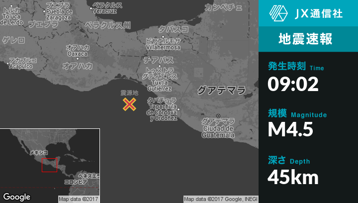 | 震源地 | メキシコのParedonから南西106kmの地点 |