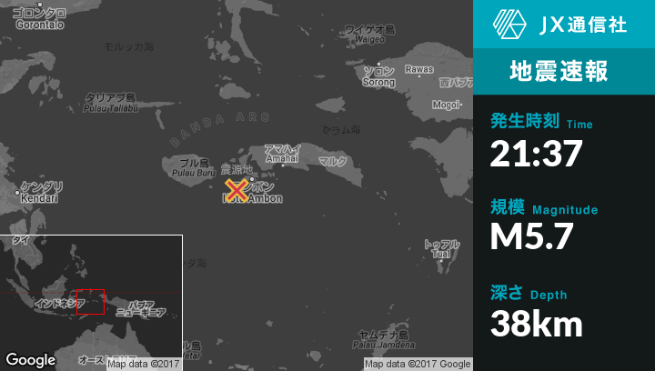 | 震源地 | インドネシアのAmahusuから西南西38kmの地点 |