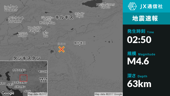 12月04日 02:50頃、タジキスタンのKarakulから東北東70kmの地点でM4.6の地震がありました。
