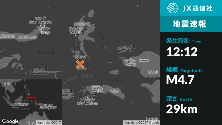 | 震源地 | インドネシアのLaiwuiから北17kmの地点 |