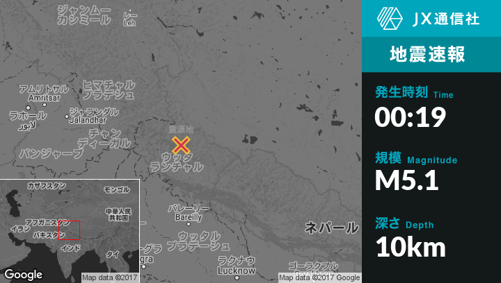 | 震源地 | インドのPipalkotiから北西34kmの地点 |