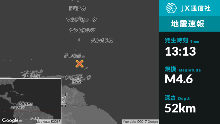 12月20日 13:13頃、グレナダのSaint David'sから南東66kmの地点でM4.6の地震がありました。