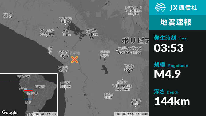 12月21日 03:53頃、チリのPutreから北北東27kmの地点でM4.9の地震がありました。