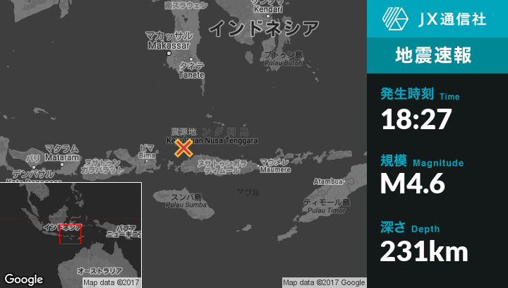 | 震源地 | インドネシアのKampungbajoから北西52kmの地点 |