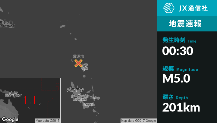 | 震源地 | バヌアツのSolaから北西86kmの地点 |
