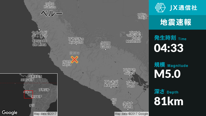 | 震源地 | ペルーのPuquioから北北西62kmの地点 |