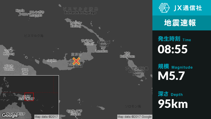 | 震源地 | パプアニューギニアのKimbeから東78kmの地点 |