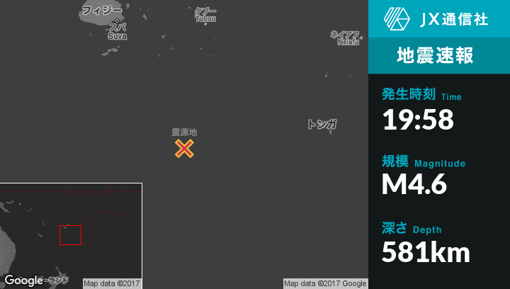 | 震源地 | フィジーのNdoi Islandから南南西145kmの地点 |