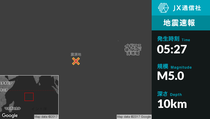 | 震源地 | イギリス領インド洋地域のDiego Garciaから西478kmの地点 |