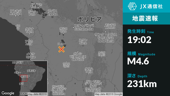 | 震源地 | ボリビアのChallapataから南西65kmの地点 |