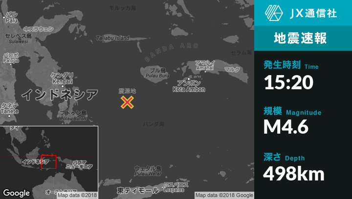 | 震源地 | インドネシアのLeksulaから南西150kmの地点 |