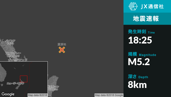 2月05日 18:25頃、ニュージーランドのOpotikiから北北東314kmの地点でM5.2の地震がありました。