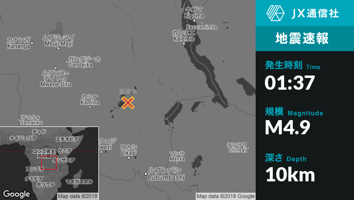 | 震源地 | コンゴ民主共和国のBukamaから北東125kmの地点 |