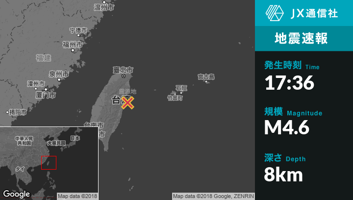 2月06日 17:36頃、台湾のHualianから東北東17kmの地点でM4.6の地震がありました。