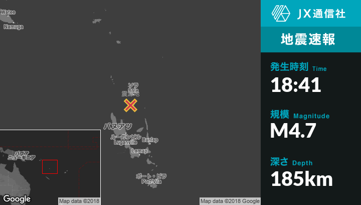 | 震源地 | バヌアツのSolaから南南西39kmの地点 |
