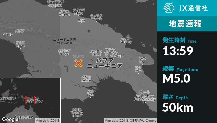 | 震源地 | パプアニューギニアのLake Murrayから東北東107kmの地点 |
