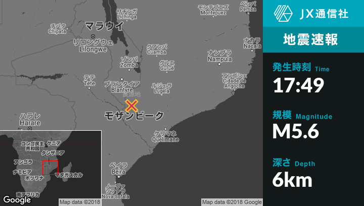 | 震源地 | マラウイのNsanjeから北東25kmの地点 |