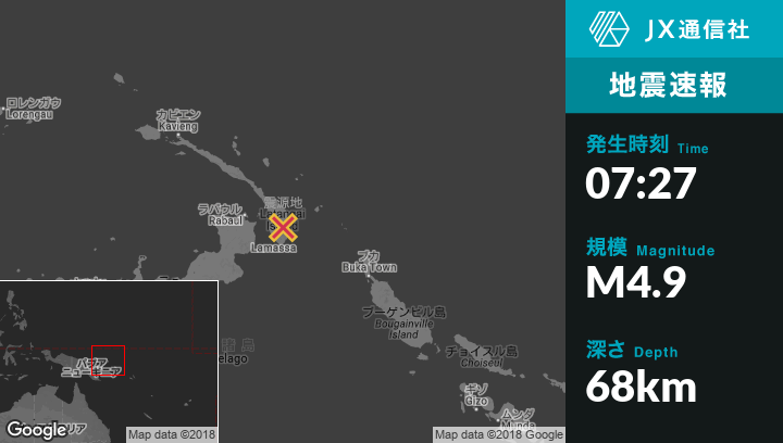 | 震源地 | パプアニューギニアのTaronから北西19kmの地点 |