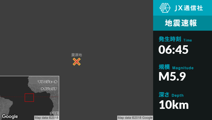 3月11日 06:45頃、セントヘレナのGeorgetownから北730kmの地点でM5.9の地震がありました。