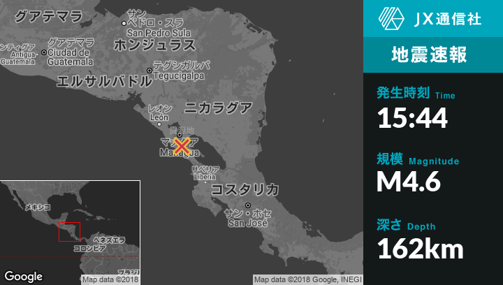 | 震源地 | ニカラグアのJinotepeから北北東3kmの地点 |