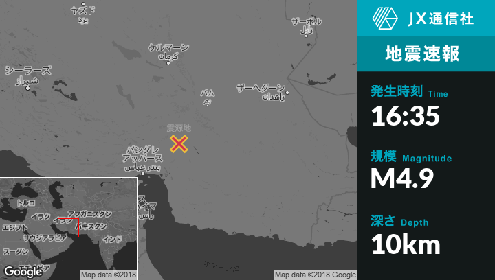 | 震源地 | イランのMinabから北北東113kmの地点 |