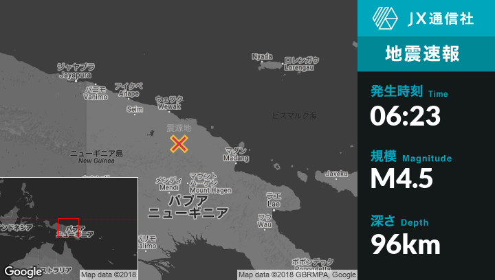 | 震源地 | パプアニューギニアのAngoramから南南西47kmの地点 |