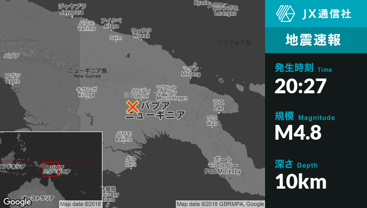 | 震源地 | パプアニューギニアのMendiから西南西44kmの地点 |