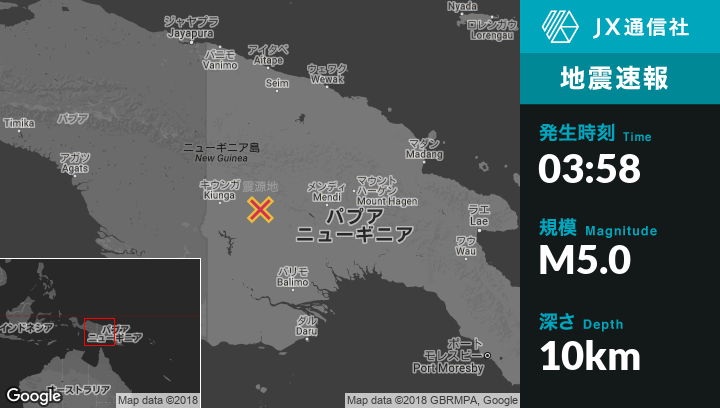 | 震源地 | パプアニューギニアのKiungaから東99kmの地点 |