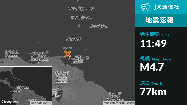 | 震源地 | ベネズエラのGueiriaから北北東49kmの地点 |