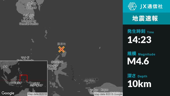 | 震源地 | インドネシアのTobeloから北129kmの地点 |