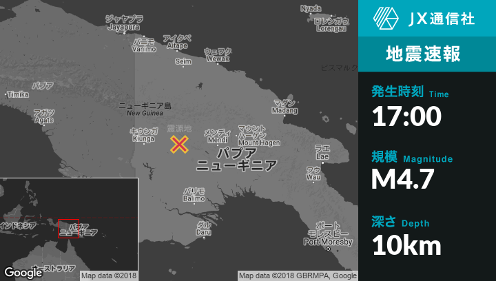 | 震源地 | パプアニューギニアのPorgeraから南西105kmの地点 |