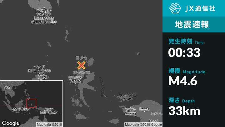 | 震源地 | インドネシアのTobeloから北北西57kmの地点 |