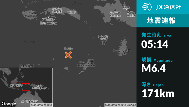 | 震源地 | インドネシアのSaumlakiから北西214kmの地点 |