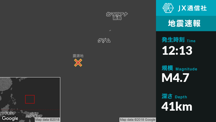 | 震源地 | グアムのMerizo Villageから南西241kmの地点 |