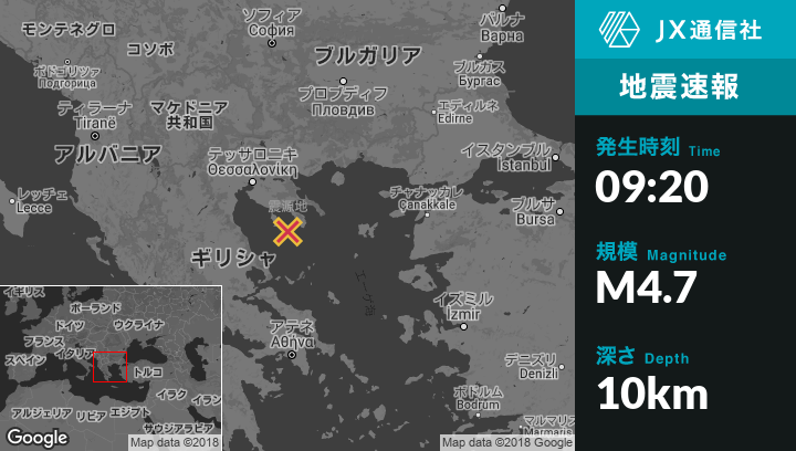 | 震源地 | ギリシャのPefkochoriから東南東1kmの地点 |