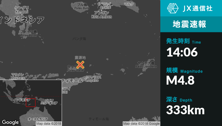4月21日 14:06頃、東ティモールのDiliから北東175kmの地点でM4.8の地震がありました。