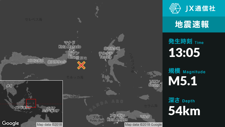 | 震源地 | インドネシアのBitungから南南東116kmの地点 |