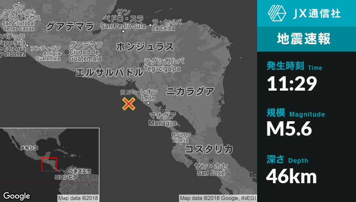 | 震源地 | ニカラグアのJiquililloから南西41kmの地点 |