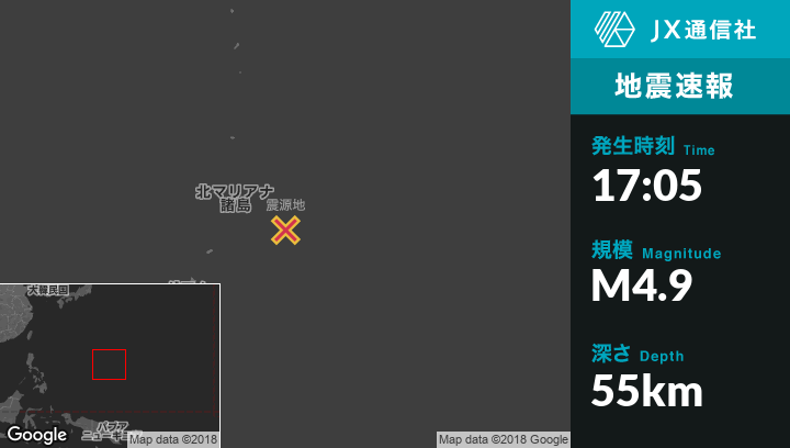4月25日 17:05頃、北マリアナ諸島のSaipanから東南東119kmの地点でM4.9の地震がありました。