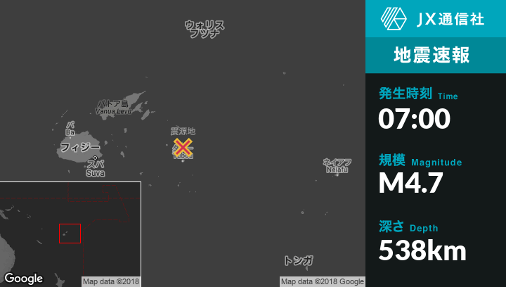 | 震源地 | フィジーのLambasaから南東240kmの地点 |