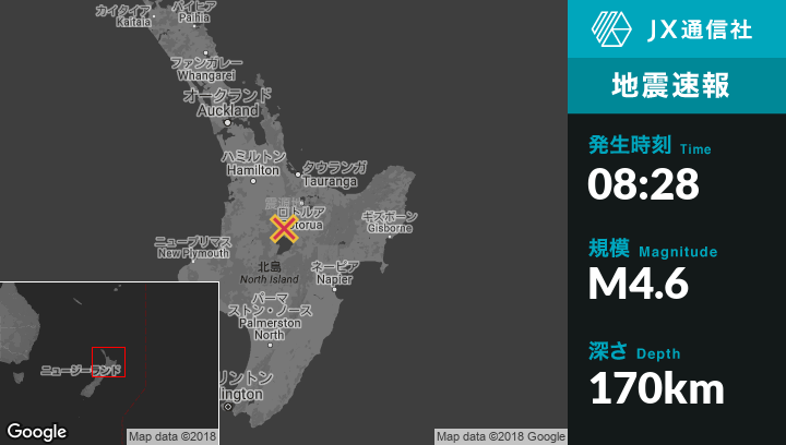 | 震源地 | ニュージーランドのTokoroaから南23kmの地点 |