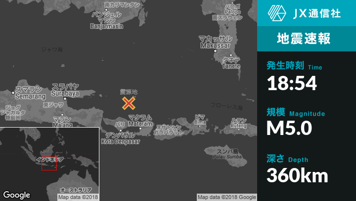 | 震源地 | インドネシアのSukadanaから北98kmの地点 |