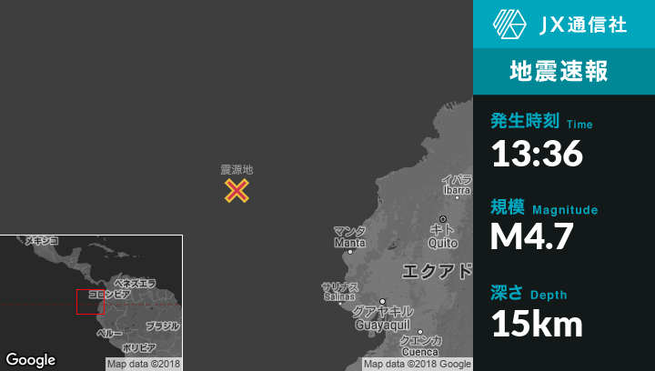 | 震源地 | エクアドルのMantaから西北西350kmの地点 |