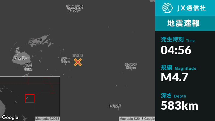 | 震源地 | フィジーのNdoi Islandから北北東306kmの地点 |