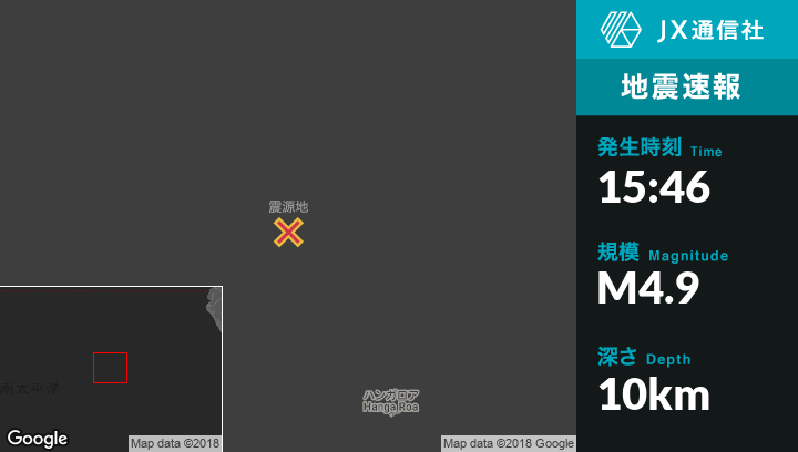 5月02日 15:46頃、チリのEaster Islandから北北西427kmの地点でM4.9の地震がありました。